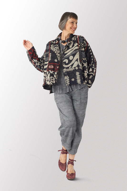 VINTAGE SILK KANTHA NUTS MEDIUM NECKLACE - sv2701-blk -