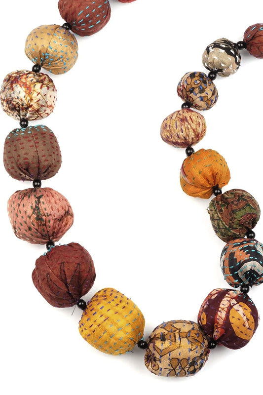VINTAGE SILK KANTHA NUTS MEDIUM NECKLACE - sv2701-org -