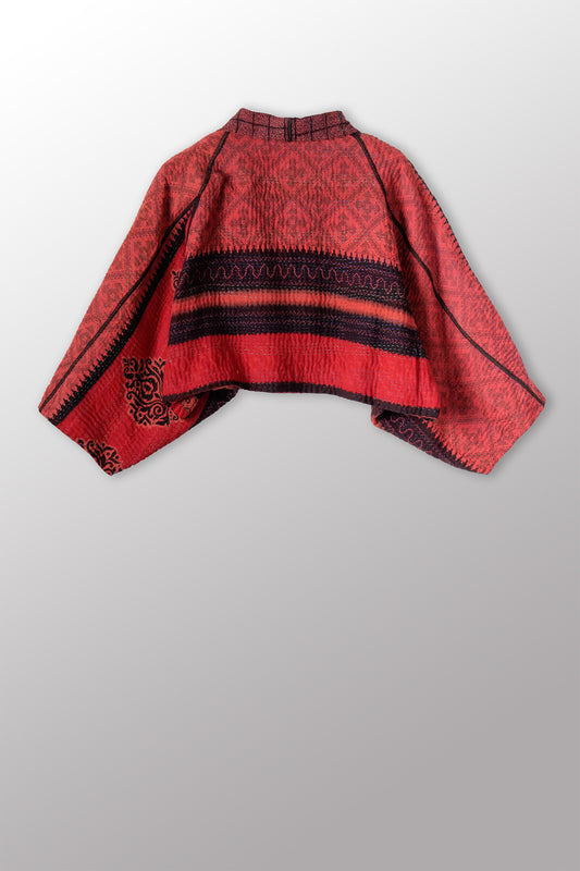 COTTON OVERDYE KANTHA PUFF SLV. SHRUG - ov4062-cred009a -