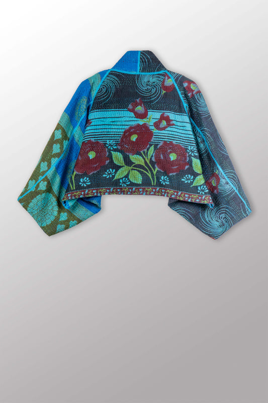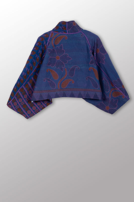 COTTON OVERDYE KANTHA STAND COLLAR CROPPED JKT - ov4034-cblu010a -