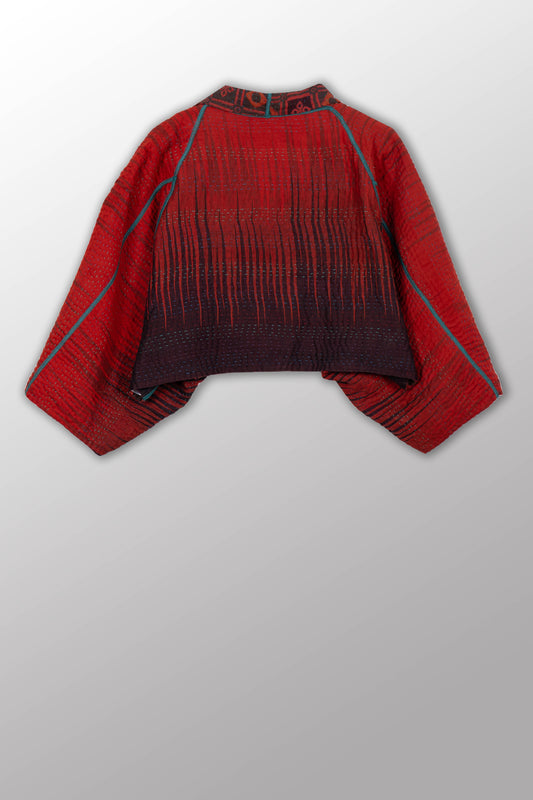 COTTON OVERDYE KANTHA PUFF SLV. SHRUG - ov4062-cred008a -