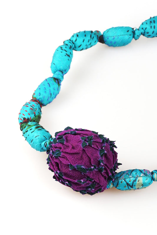 VINTAGE SILK KANTHA SEA URCHIN SHORT NECKLACE - sv2708-prp -