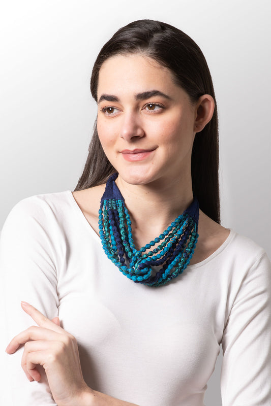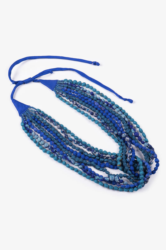 VINTAGE SILK KANTHA SEED NECKLACE - sv2721-blu -