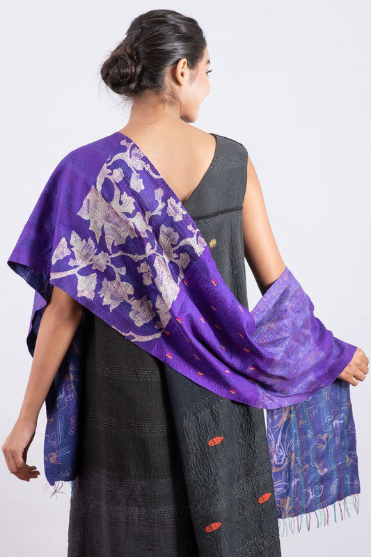 VINTAGE SILK KANTHA SCARF SMALL - sv2800-prp -