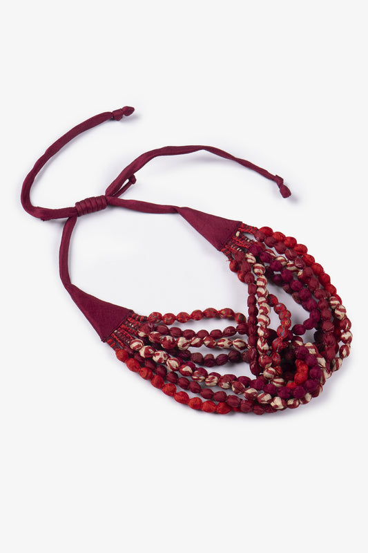 VINTAGE SILK KANTHA SEED NECKLACE SHORT - sv2722-red -