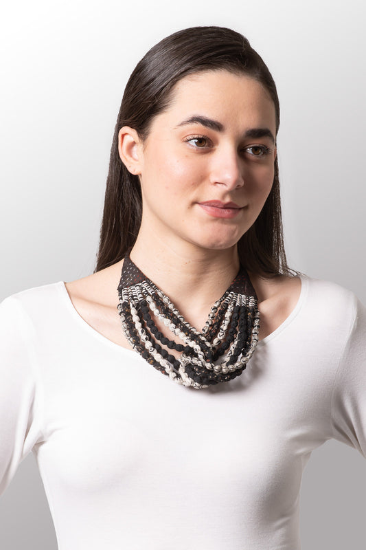 VINTAGE SILK KANTHA SEED NECKLACE SHORT - sv2722-blk -