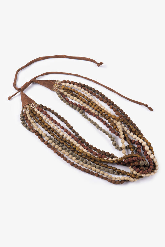 VINTAGE SILK KANTHA SEED NECKLACE - sv2721-ntl -