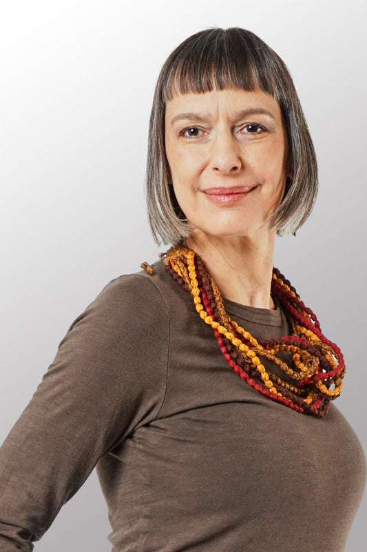 VINTAGE SILK KANTHA SEA URCHIN MEDIUM NECKLACE - sv2709-brn -