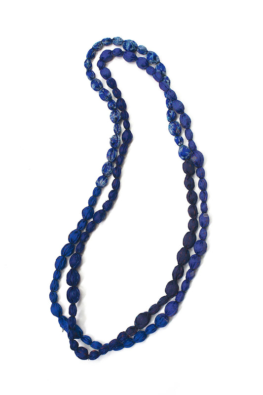 VINTAGE SILK KANTHA TIE-BEADS LONG NECKLACE - sv2707-blu -