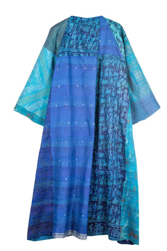 VINTAGE SILK PATCH KANTHA KIMONO MAXI - vp2318-blu -