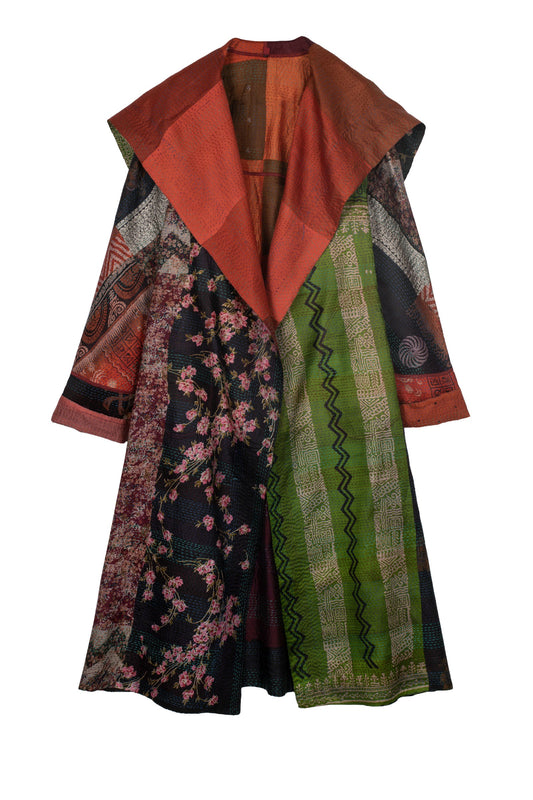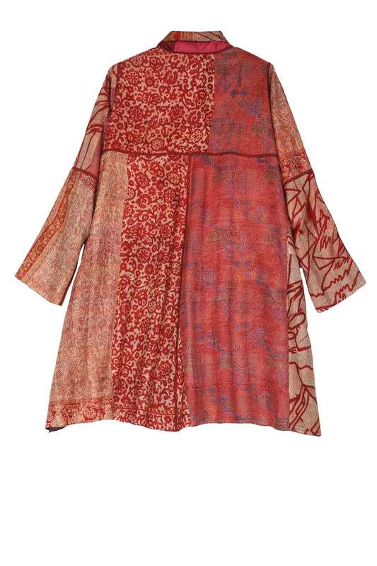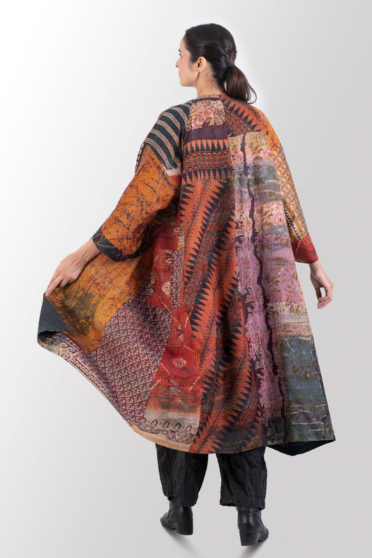 VINTAGE SILK PATCH KANTHA A-LINE DUSTER - vp2311-cor -