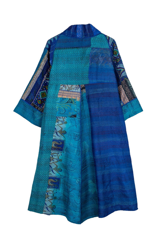 VINTAGE SILK PATCH KANTHA A-LINE DUSTER - vp2311-blu -