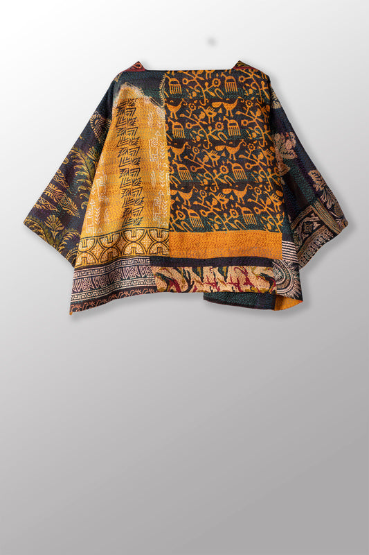 VINTAGE SILK PATCH KANTHA 3/4 SLV. CROP TOP MIO - vp2538-ylw -