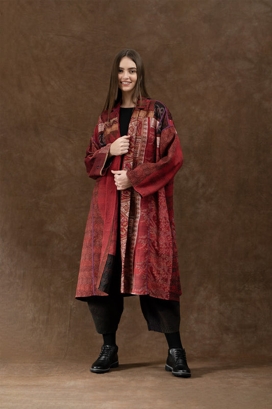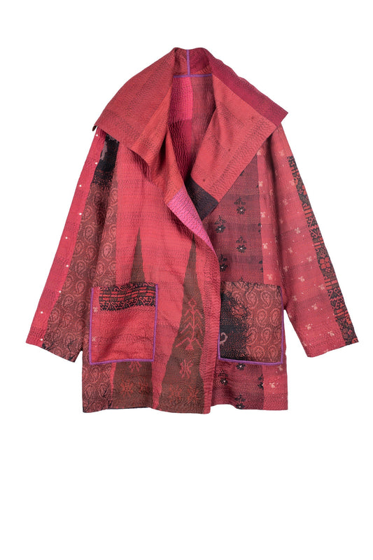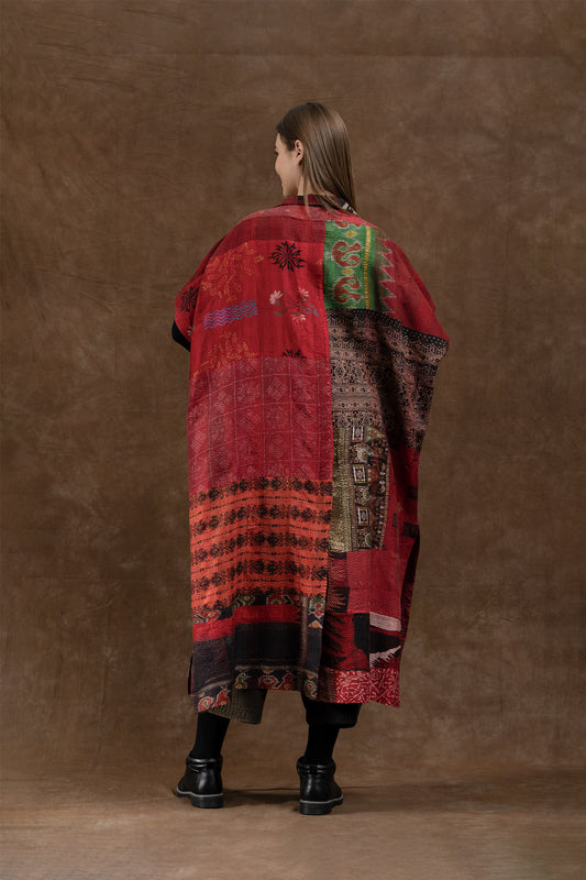 VINTAGE SILK PATCH KANTHA NEW OVERSIZED COAT - vp2342-red -