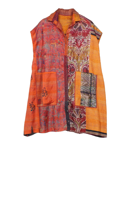 VINTAGE SILK PATCH KANTHA SHIRT DRESS - vp2426-org -