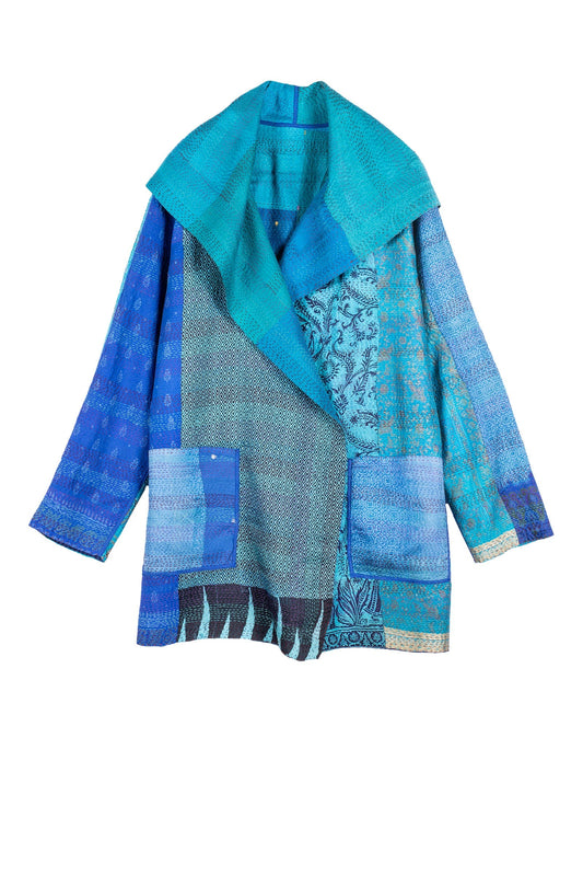 VINTAGE SILK PATCH KANTHA POCKET JKT - vp2002-blu -