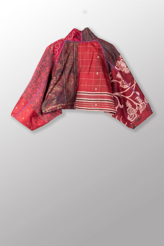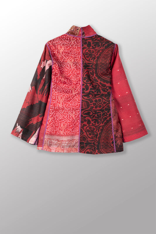 VINTAGE SILK PATCH KANTHA SHORT JACKET - vp2007-red -