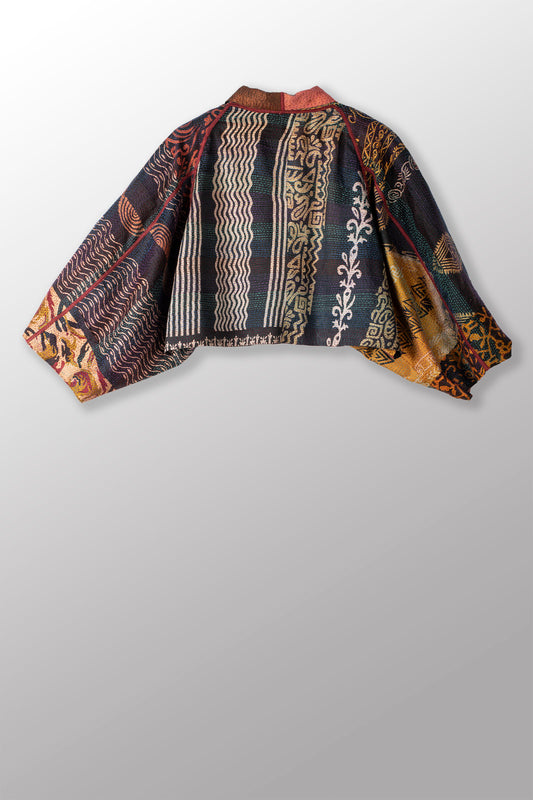VINTAGE SILK PATCH KANTHA SHORT JACKET - vp2007-cor -