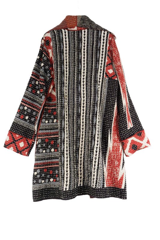 WAFFLE IKAT KANTHA POCKET MEDIUM COAT - wi3316-red -