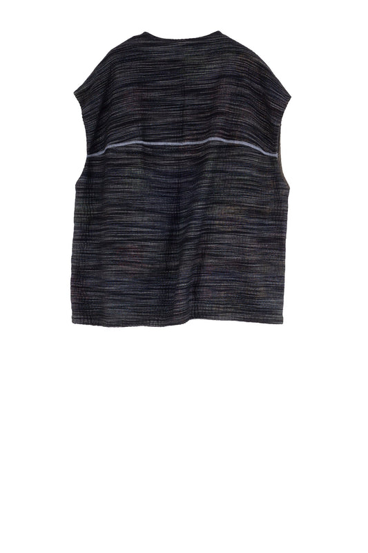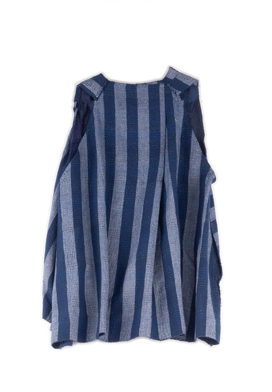 WOVEN STRIPE FRAYED PATCH BACK KANTHA BACK PLEATED VEST SHORT - wp2223-nvy -