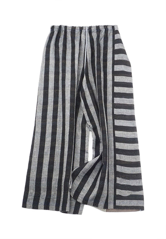 WOVEN STRIPE FRAYED PATCH BACK KANTHA KNEE TUCKED PANTS - wp2625-gry -