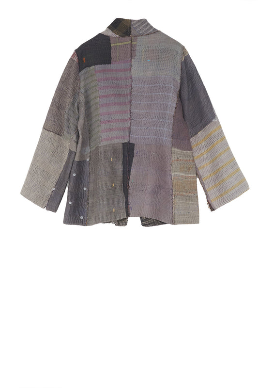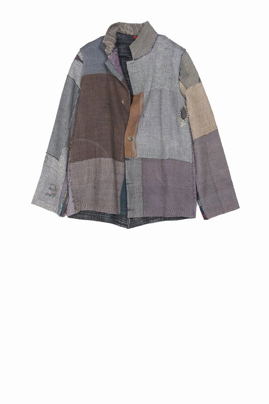 WOVEN IKAT & FRAYED PATCH KANTHA SIMPLE JKT - wk4022-gry -