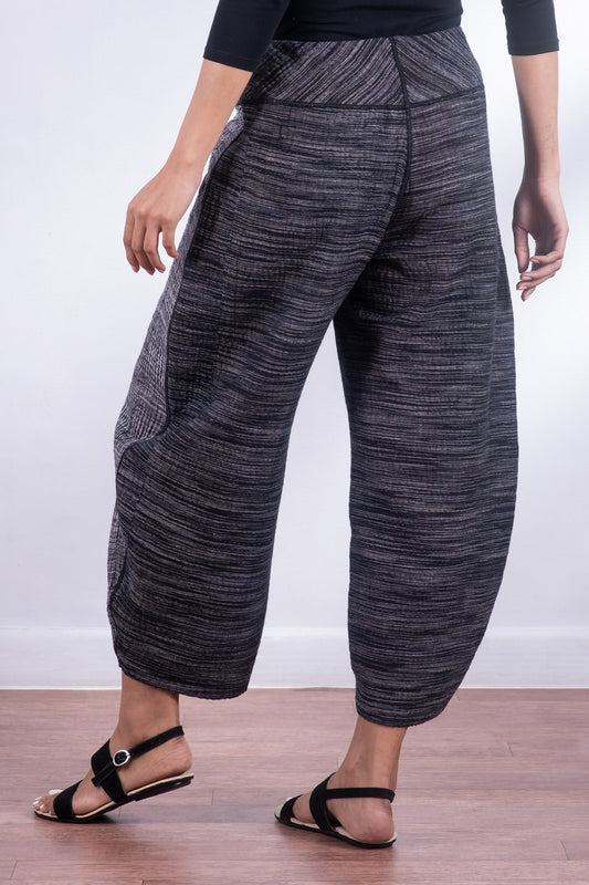 WOVEN IKAT & FRAYED PATCH KANTHA LANTERN PANTS - wk4634-gry -
