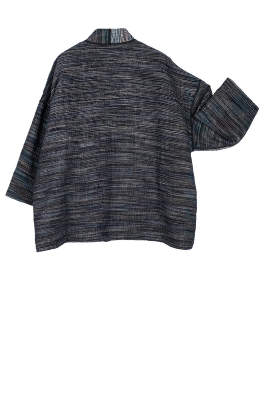 WOVEN IKAT & FRAYED PATCH KANTHA MINI KIMONO JKT - wk4055-gry -