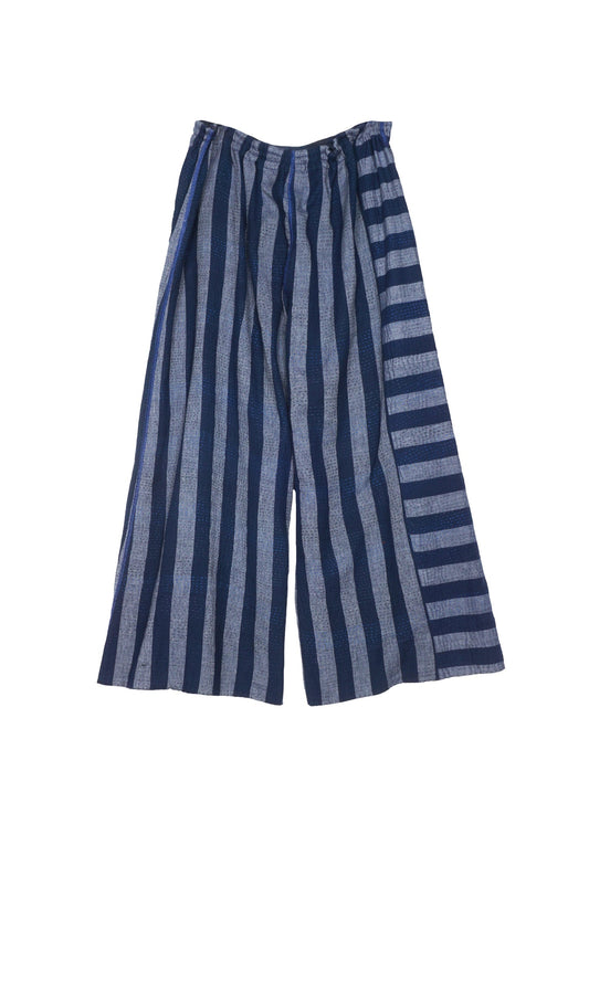 WOVEN STRIPE FRAYED PATCH BACK KANTHA DRAW STRING GAUCHO - wp2627-nvy -