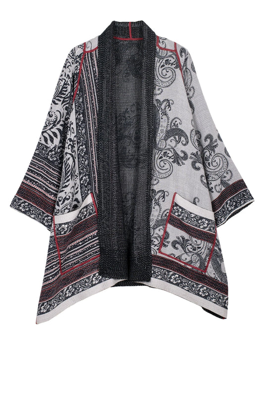 COTTON PAISLEY KANTHA MINI KIMONO JKT - cp2055-blk -
