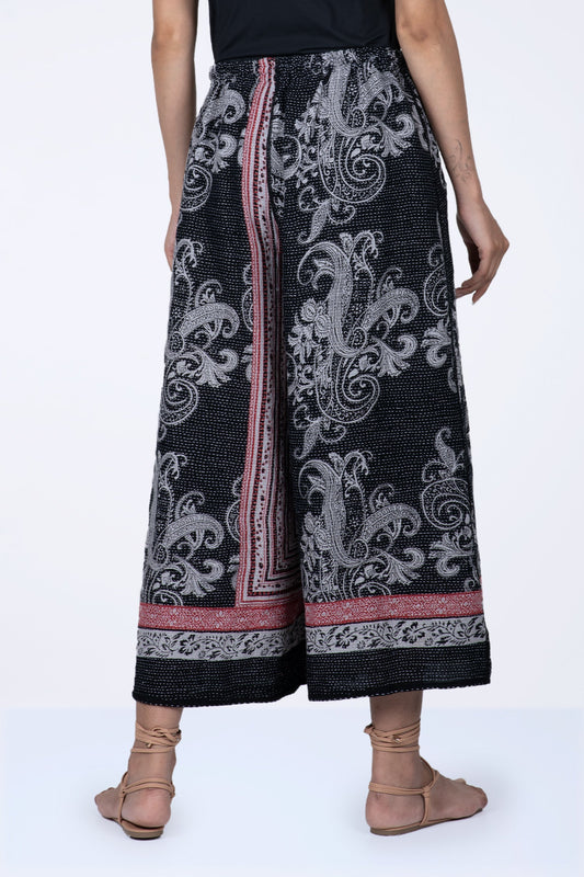 COTTON PAISLEY KANTHA FRONT WRAP PANTS - cp2631-blk -