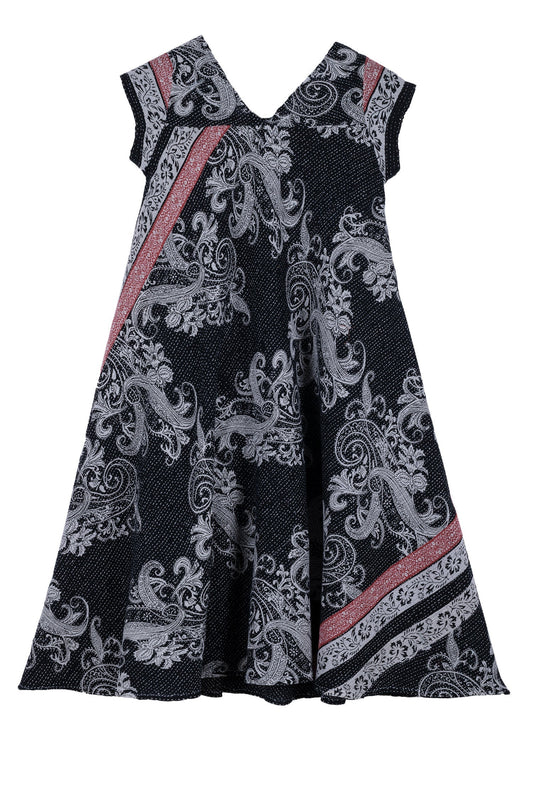 COTTON PAISLEY KANTHA CAP SLV. FLARE DRESS - cp2425-blk -