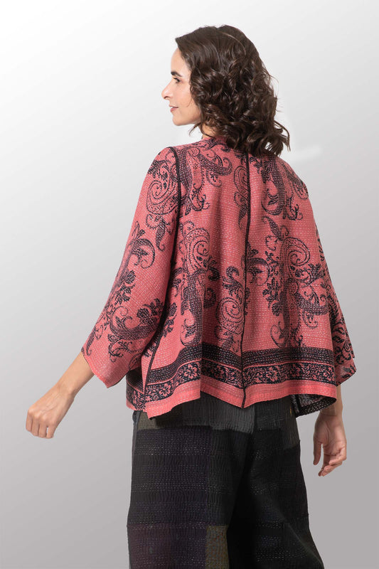 COTTON PAISLEY KANTHA BELL SHAPE JACKET - cp2048-pik -