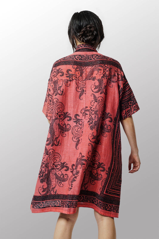 COTTON PAISLEY KANTHA HALF SLV. SHIRT DRESS - cp2429-pik -