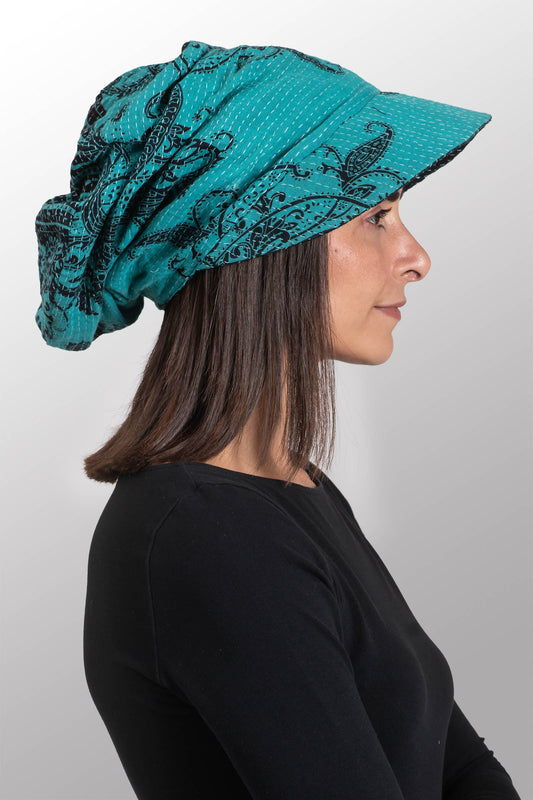 COTTON PAISLEY KANTHA CASKET HAT BY KYOKO MURAYAMA - cp2895-tuq -