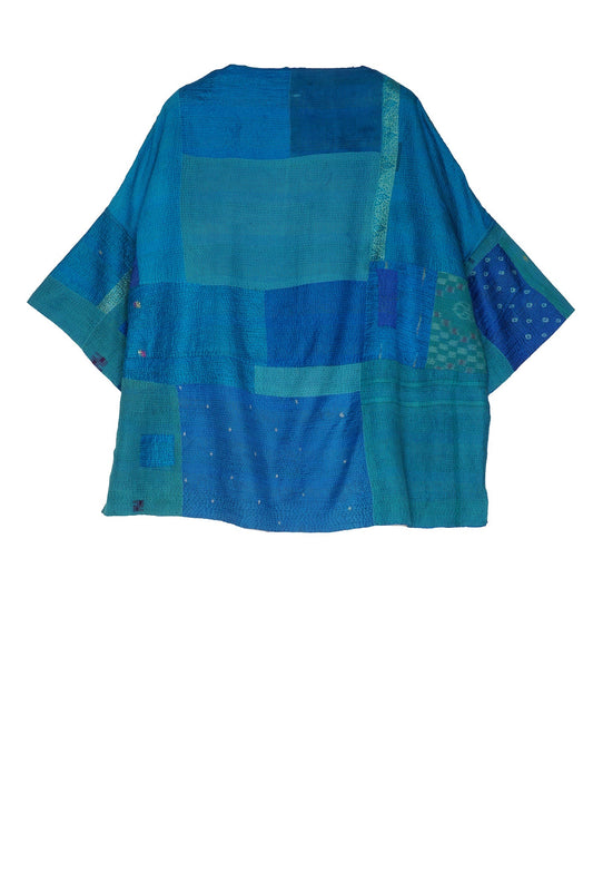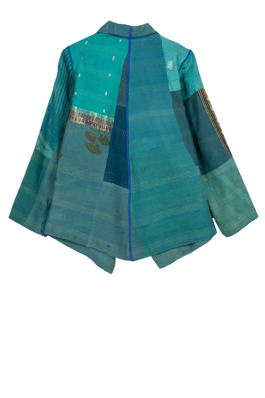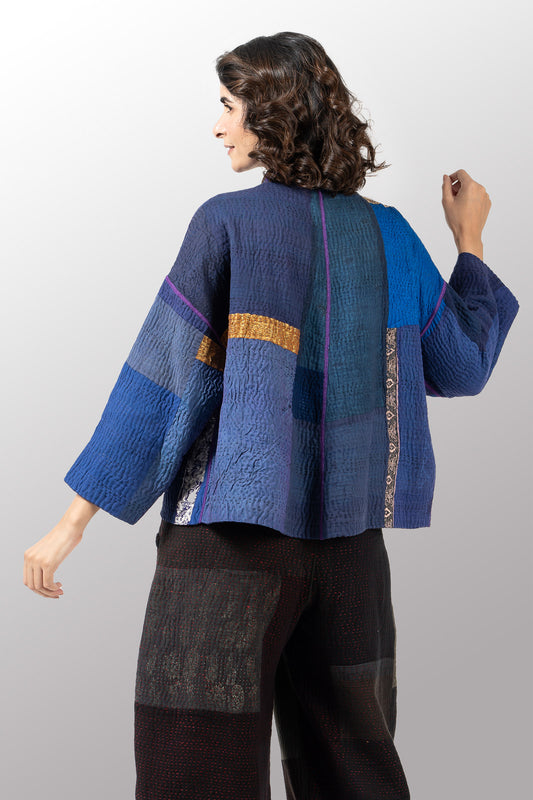 COTTON SILK SW PATCH KANTHA SHORT JKT - ws2007-blu -
