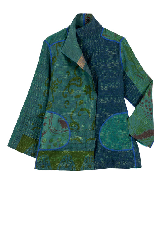 COTTON SILK SW PATCH KANTHA STRAIGHT NECK JKT - ws2058-tuq -