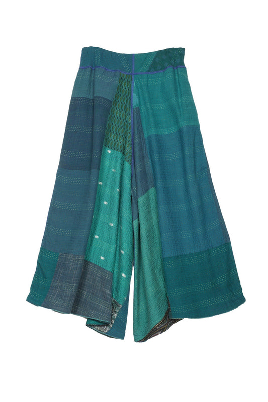 COTTON SILK SW PATCH KANTHA WIDE LEG SHORT PANTS - ws2624-tel -