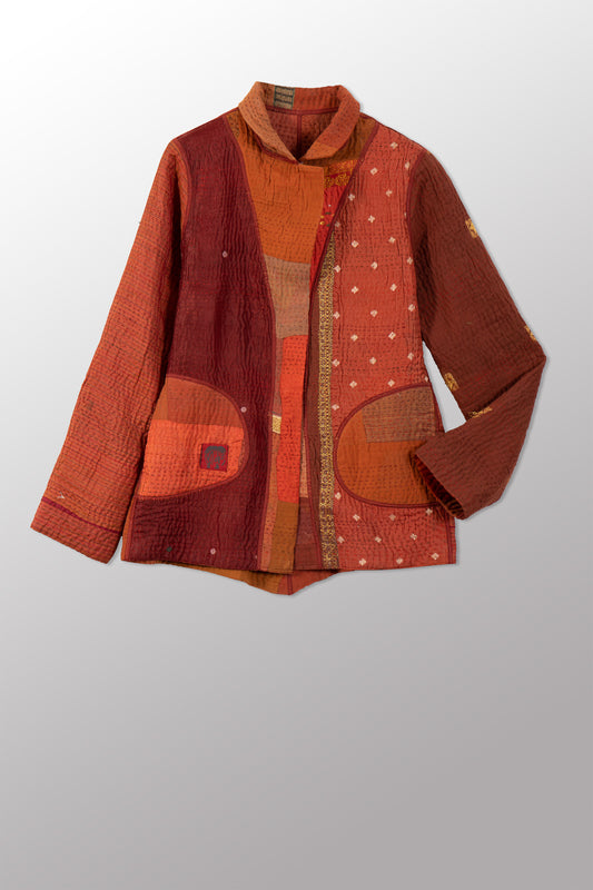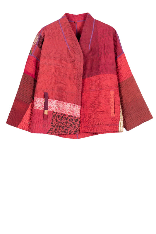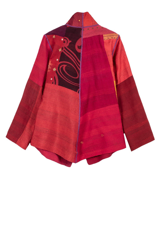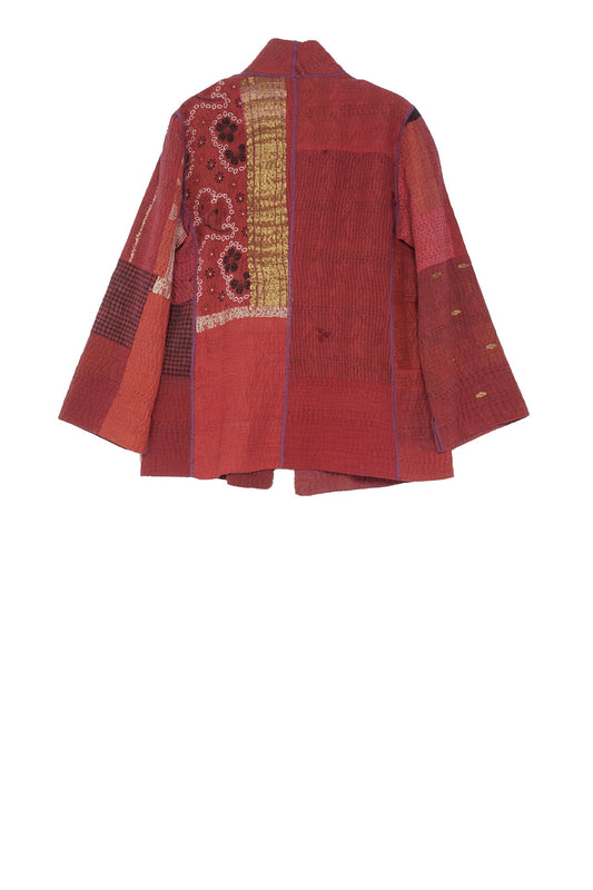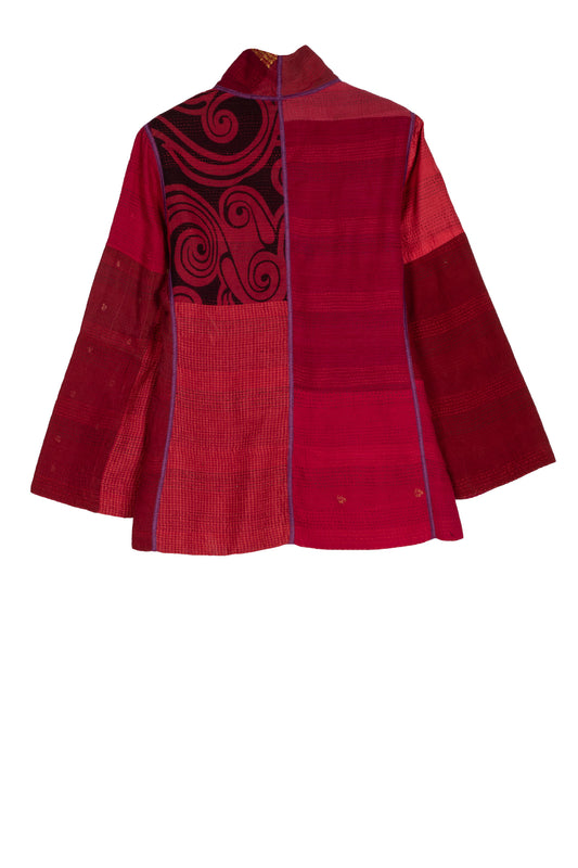 COTTON SILK SW PATCH KANTHA WING COLLAR JACKET - ws2013-red -