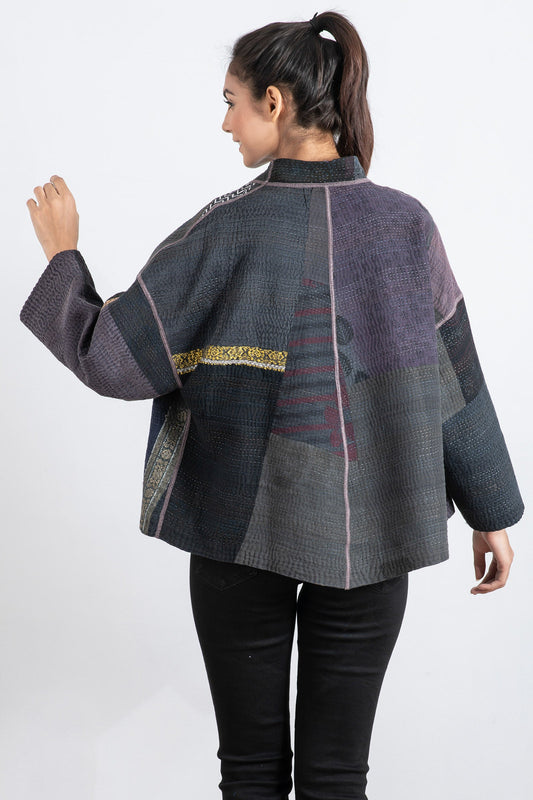 COTTON SILK SW PATCH KANTHA WING COLLAR JACKET - ws2013-tel -