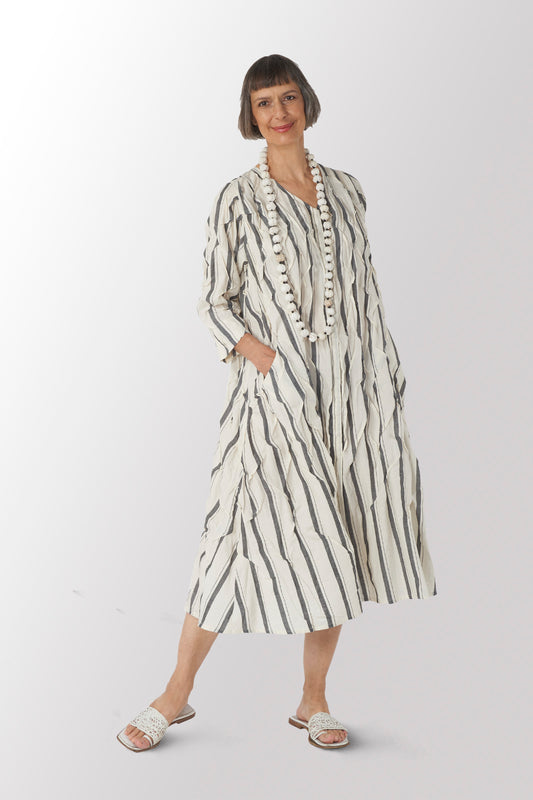 COTTON SILK SW PATCH KANTHA SMALL NUTS LONG NECKLACE - ws2706-gry -