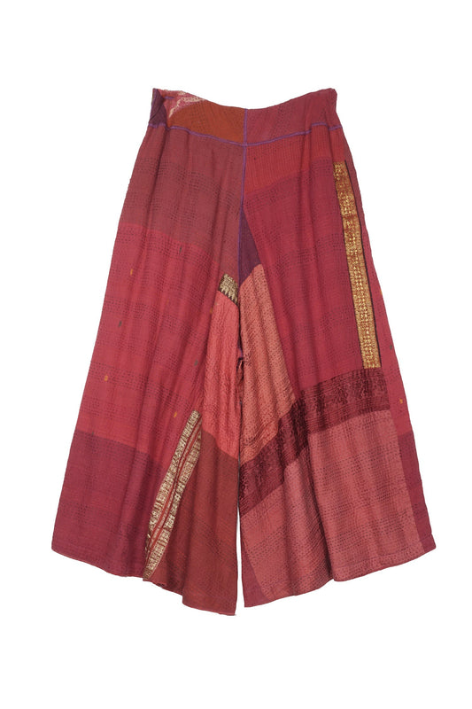 COTTON SILK SW PATCH KANTHA WIDE LEG SHORT PANTS - ws2624-red -