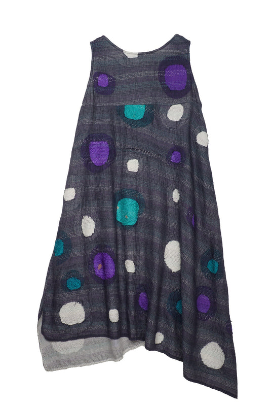 CUT OUT KANTHA POINTY HEM DRESS - ck2415-blu -