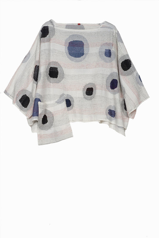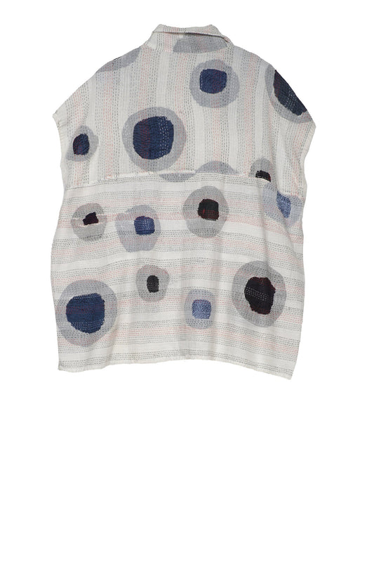 CUT OUT KANTHA SHIRT PONCHO - ck2545-blu -