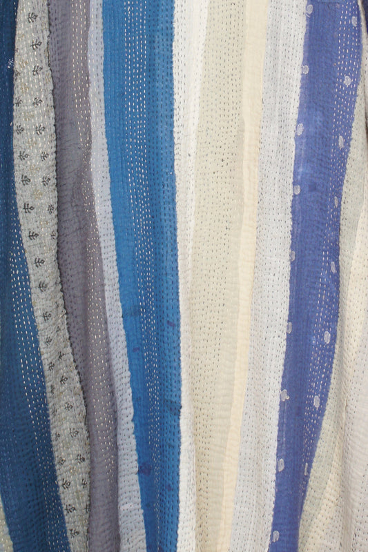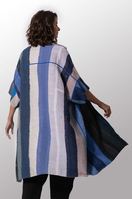 COTTON STRIPE PATCH KANTHA OVERSIZED COAT - cs4326-blu -