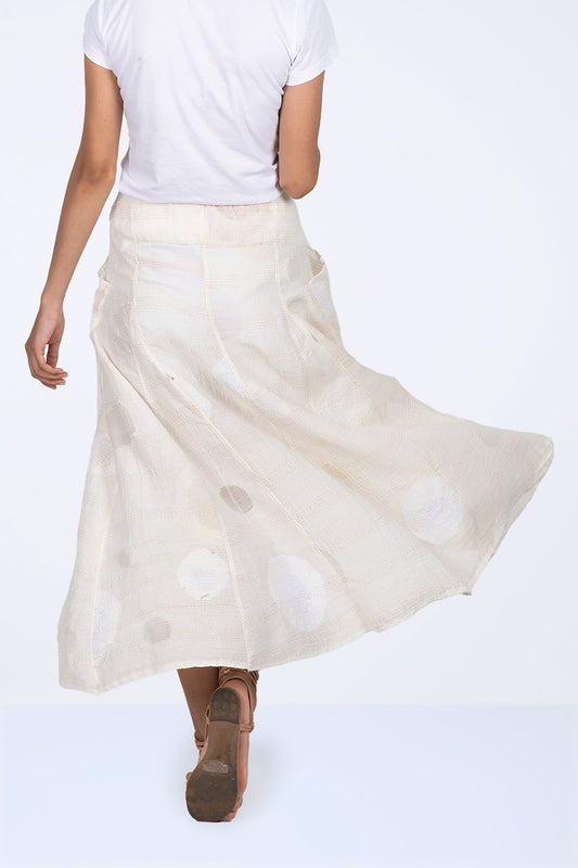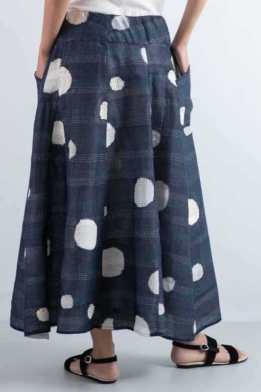 CUT THROUGH DOT AND HOLES KANTHA PANELED FLARE SKIRT - cd2630-ivy -