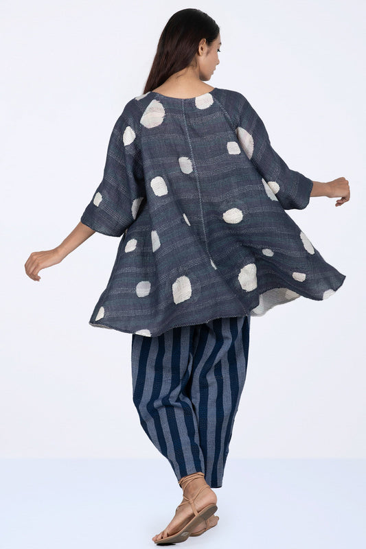 CUT THROUGH DOT AND HOLES KANTHA PUFF SLV. FLARE TOP - cd2543-blu -