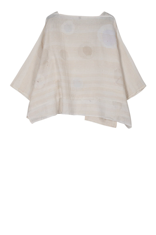 CUT OUT KANTHA SHIRT PONCHO - ck2545-wht -