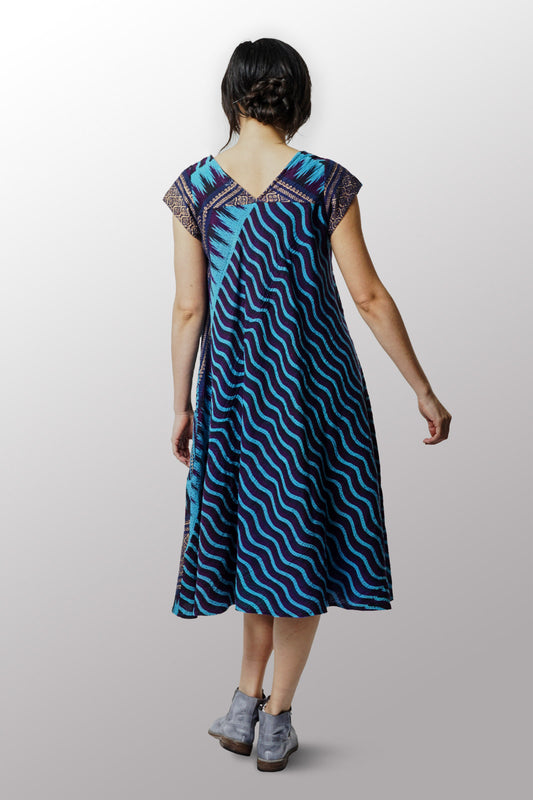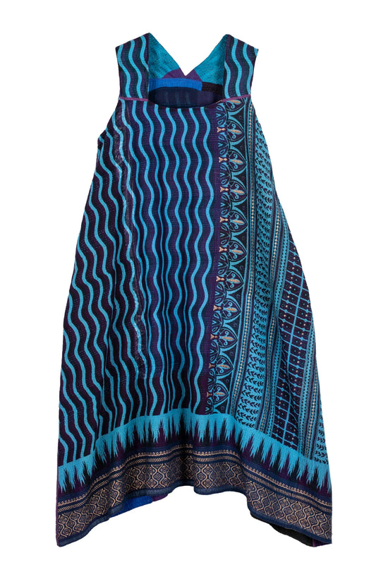DESERT WAVES KANTHA TENT DRESS - dw2413-blu -