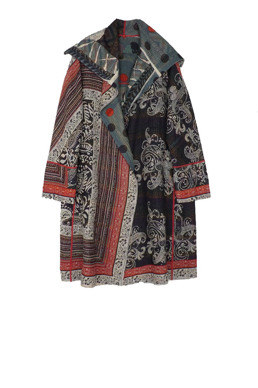 DOT & PAISLEY KANTHA A-LINE COAT - dp4309-nvy -
